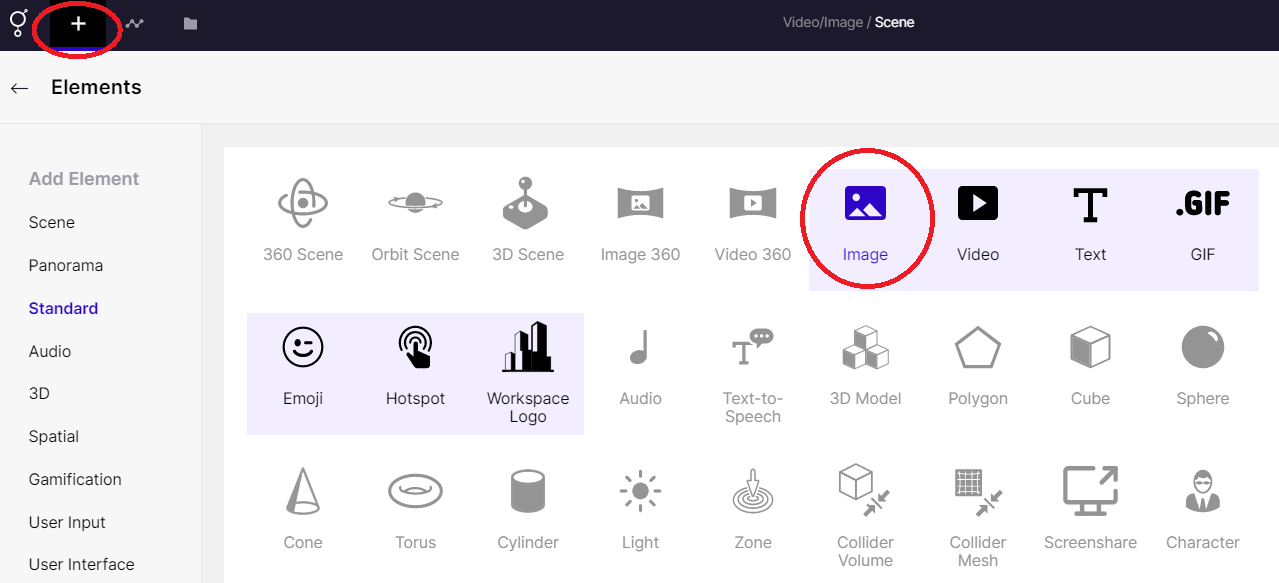 You can add an image by clicking on the '**+**' icon in the top bar.