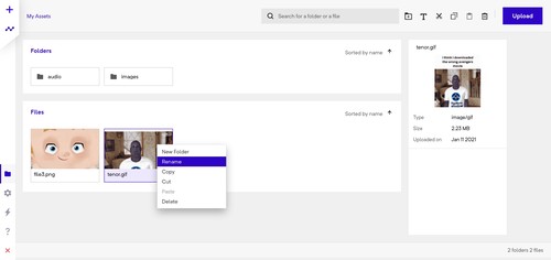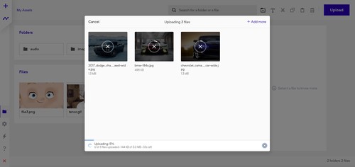 To upload assets, drag and drop any number of file or folders to the file manager screen.