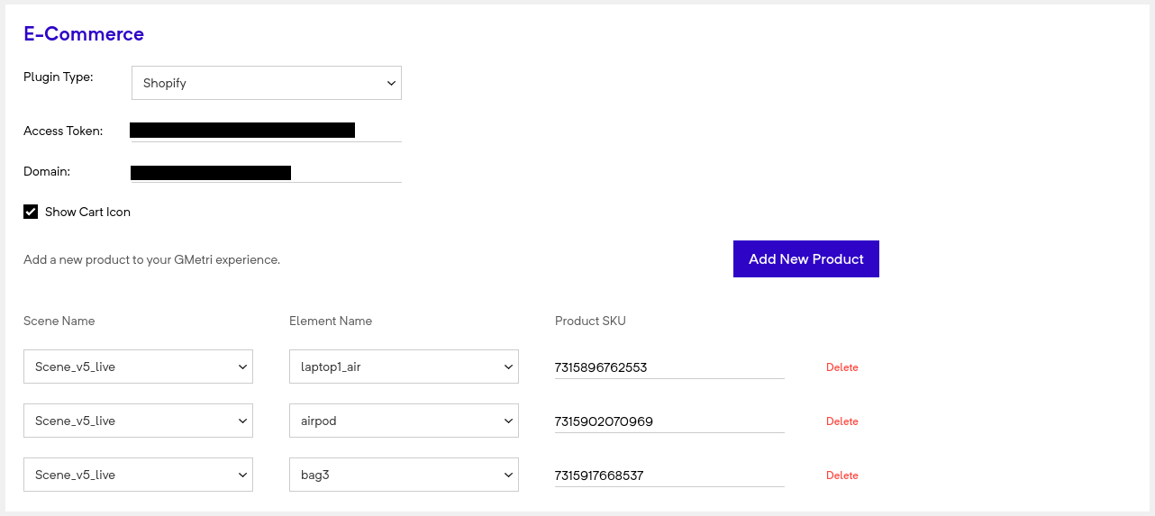 Show Cart Iconto enable showing a cart counter and checkout link to the shopify store from within a GMetri experience.