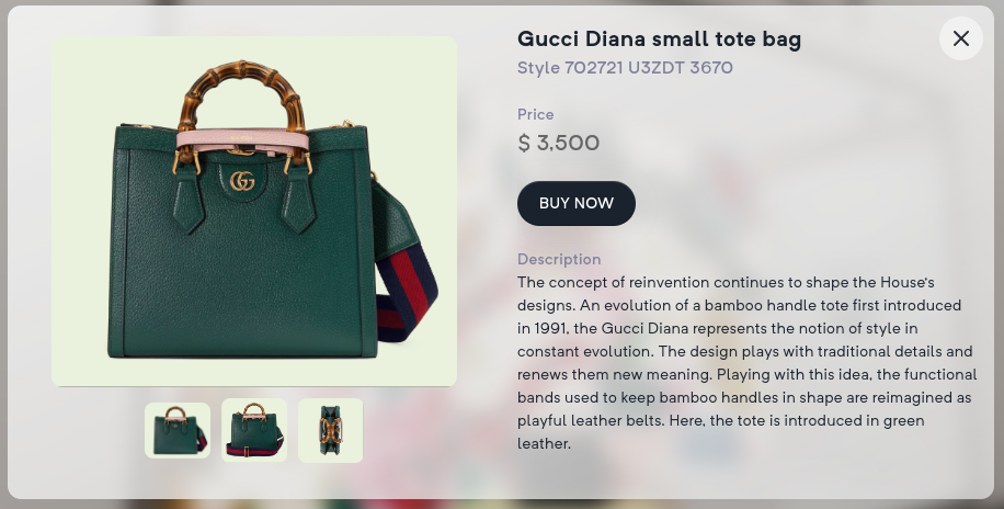 This should open up the product page with information from the shopify store, including pricing details, pictures and variants.