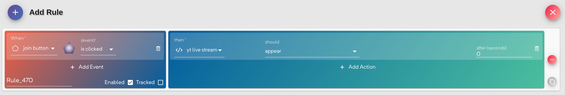 Also add a rule to show the EmbedHTML element setup above when clicked on any button.