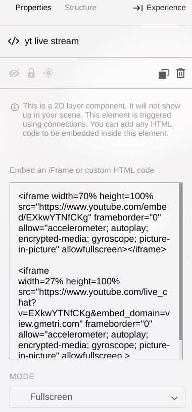 This mode opens a small window where the user can view the livestream as well as the experience at the same time.